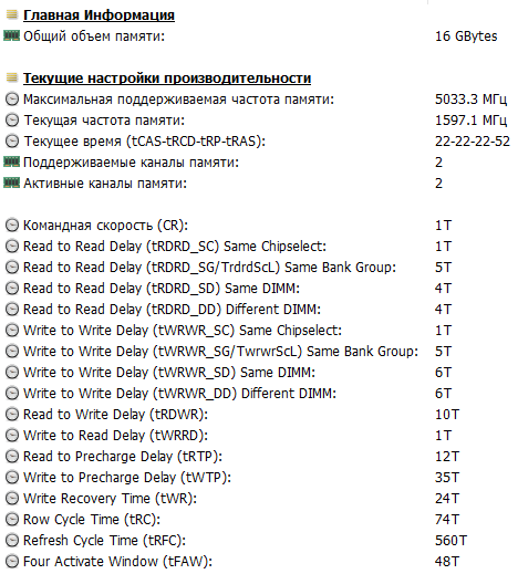 | Оперативная память | 16 ГБ DDR4-3200 МГц (распаяна на плате), двухканальный режим, тайминги 22-22-22-52 CR1 | |