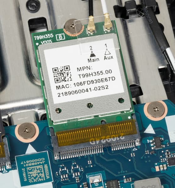 Он обеспечивает беспроводные соединения в частотных диапазонах 2,4, 5 и 6 ГГц с максимальной скоростью обмена данными до 3,6 Гбит/с. Также модуль поддерживает Bluetooth 5.3, но в характеристиках ноутбука указана поддержка только Bluetooth 5.1.