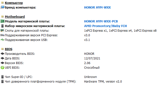 В ноутбуке Honor MagicBook 16 (HYM-W56) используется 16,1-дюймовая IPS-матрица с разрешением 1920×1080 пикселей (отчет edid-decode).