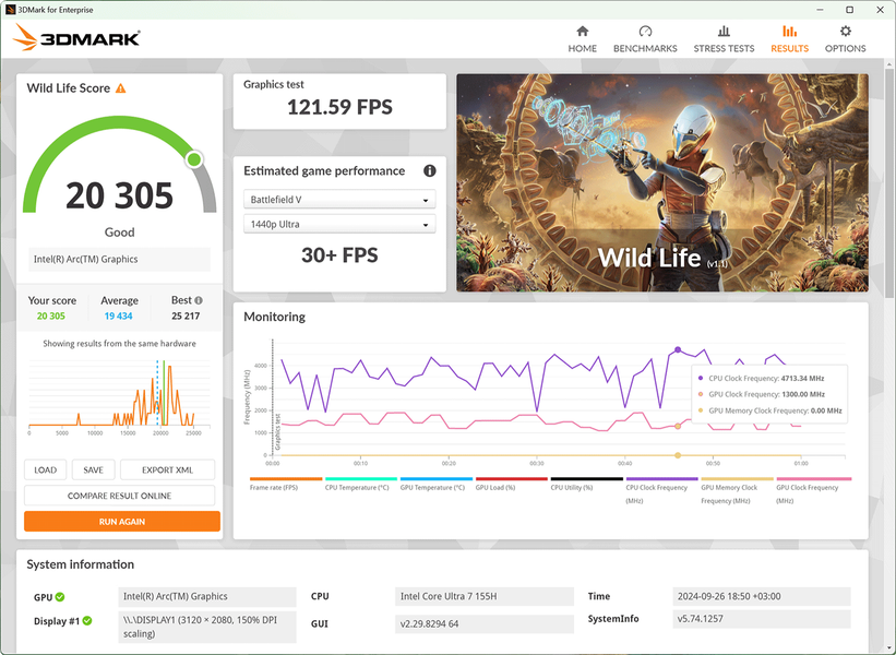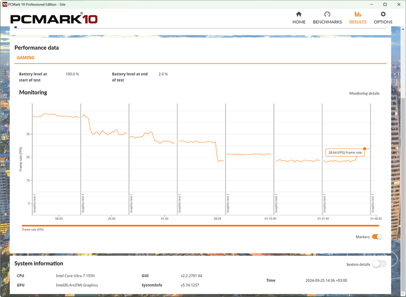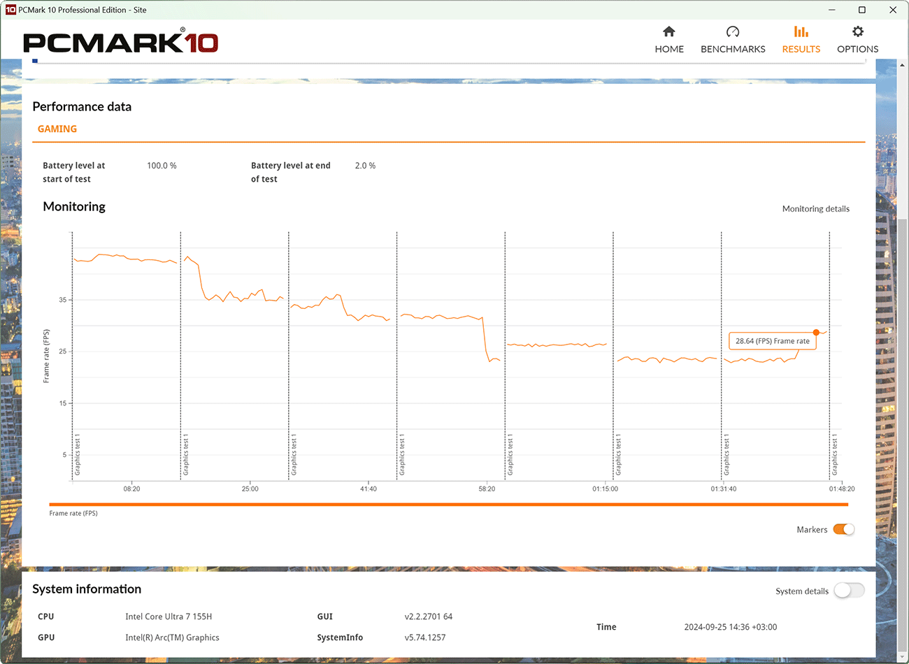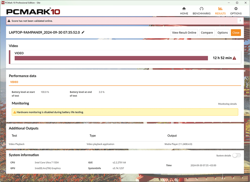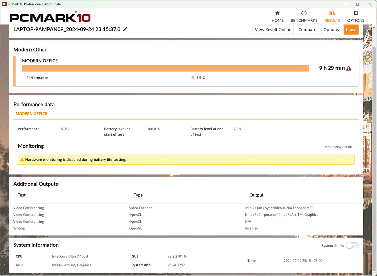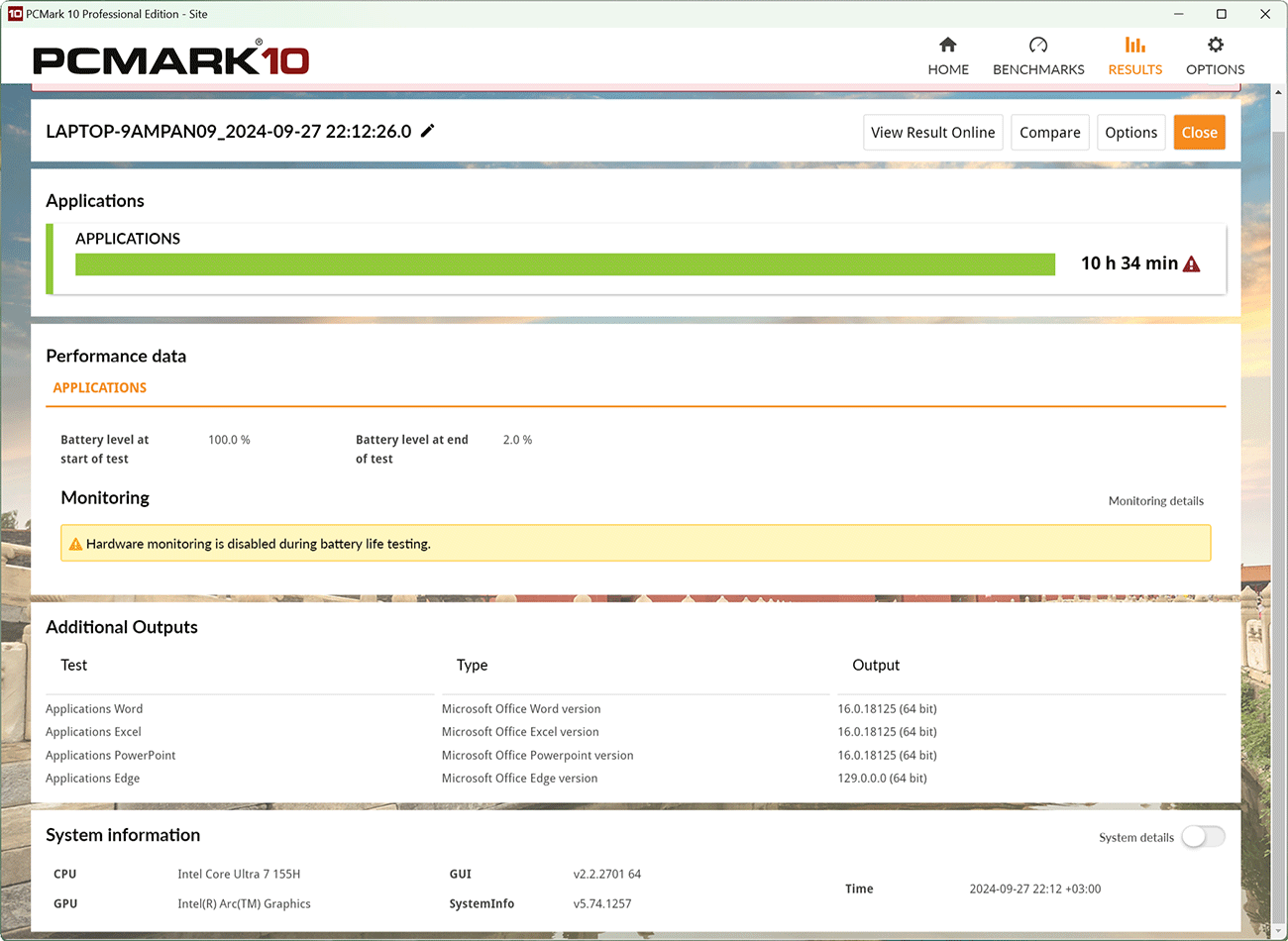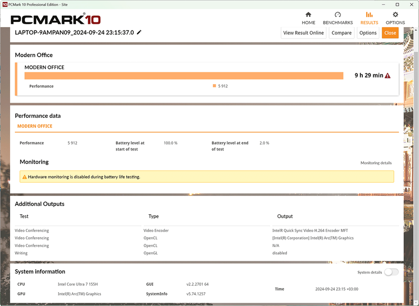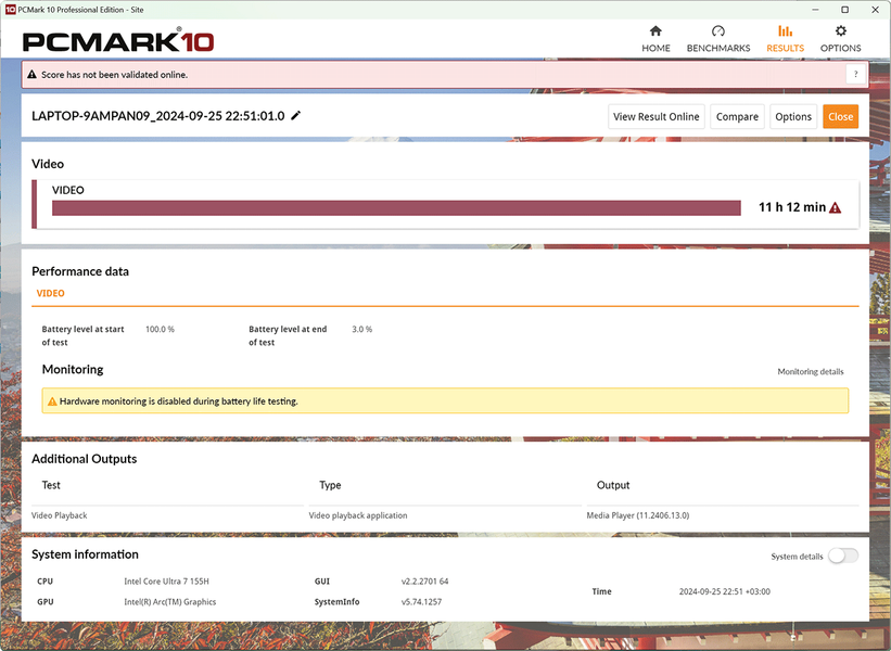 Кроме этого, мы провели дополнительные тесты автономности MagicBook Art 14 в тестовом пакете PCMark’10, получив следующие показатели.