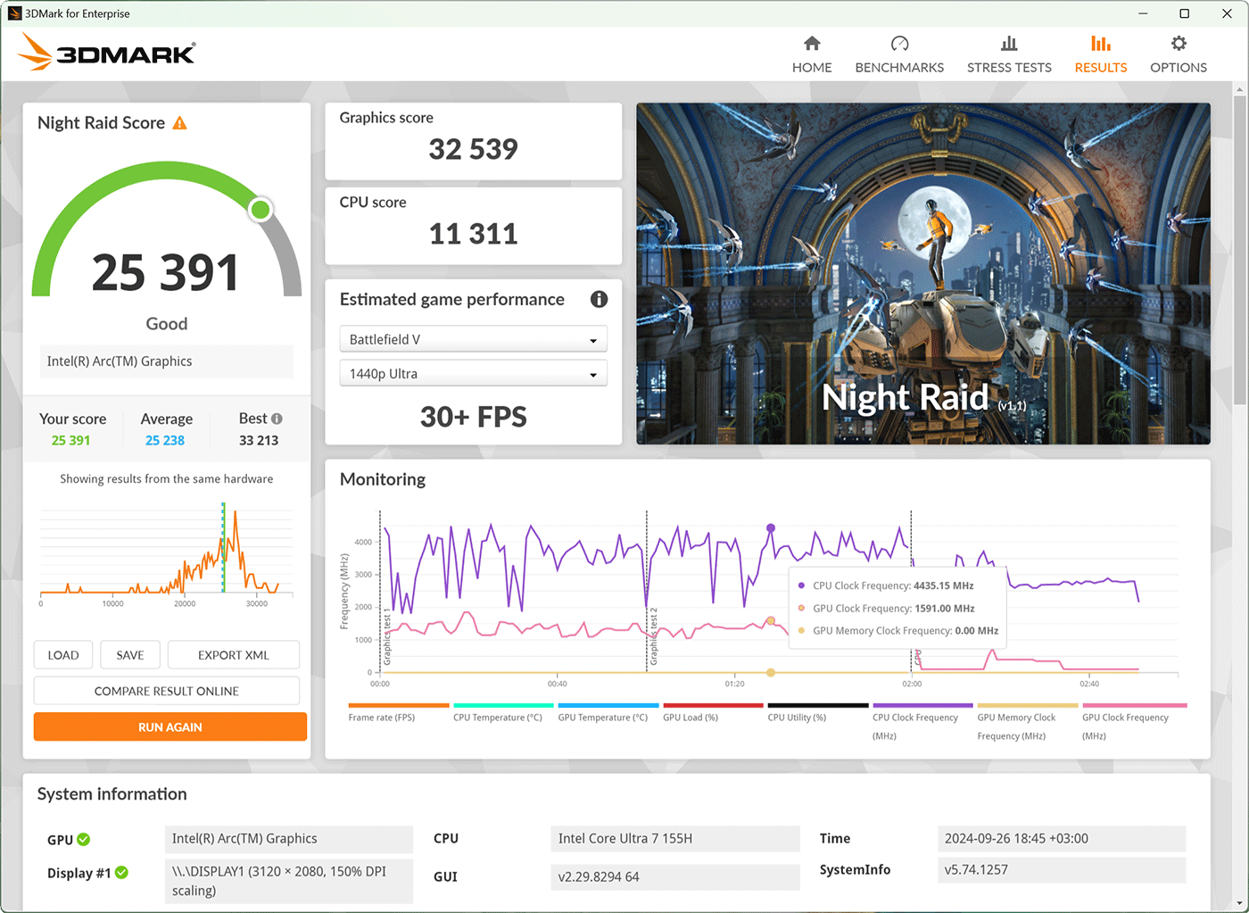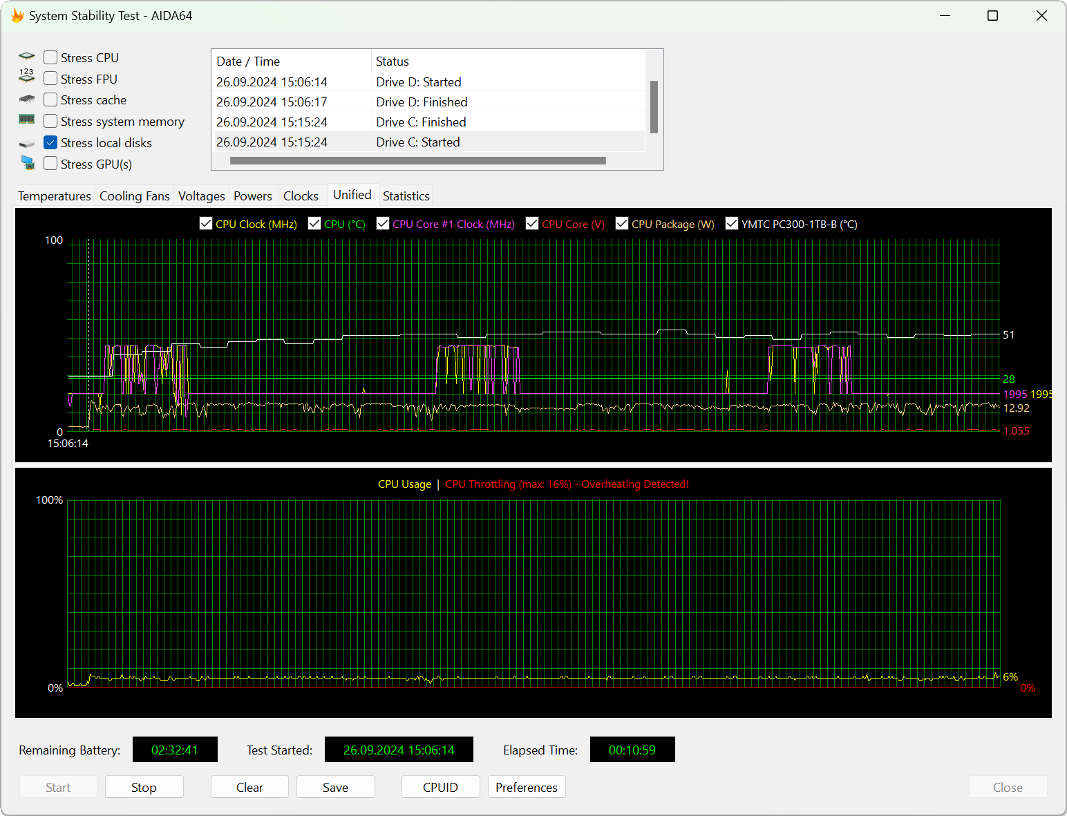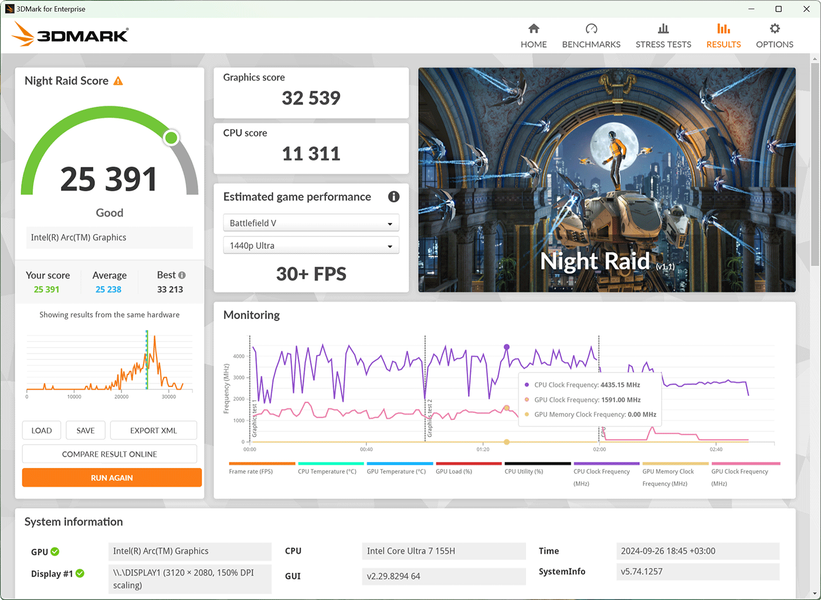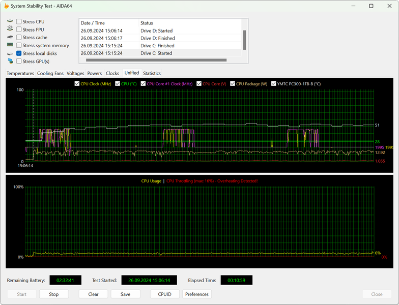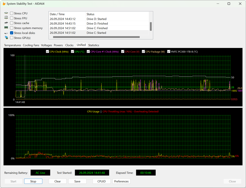 Интересно, что в автономном режиме графики мониторинга отличаются (становятся более сглаженными), но в сухом остатке ультрабук выходит на точно те же параметры работы, что и при питании от электросети.