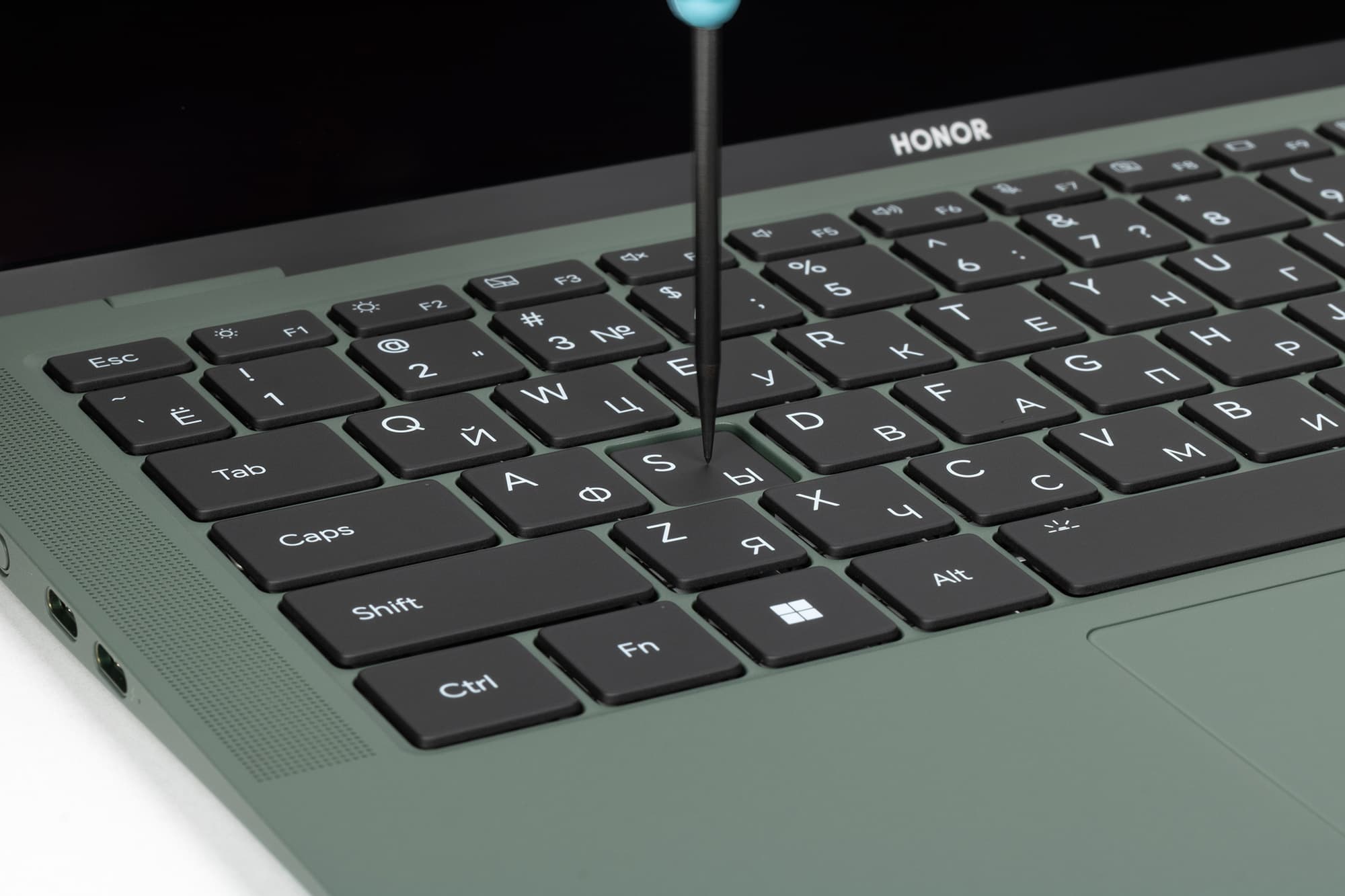 Вдобавок в нее встроен сканер отпечатков пальцев — уже традиционная и полезная особенность большинства ноутбуков Honor.