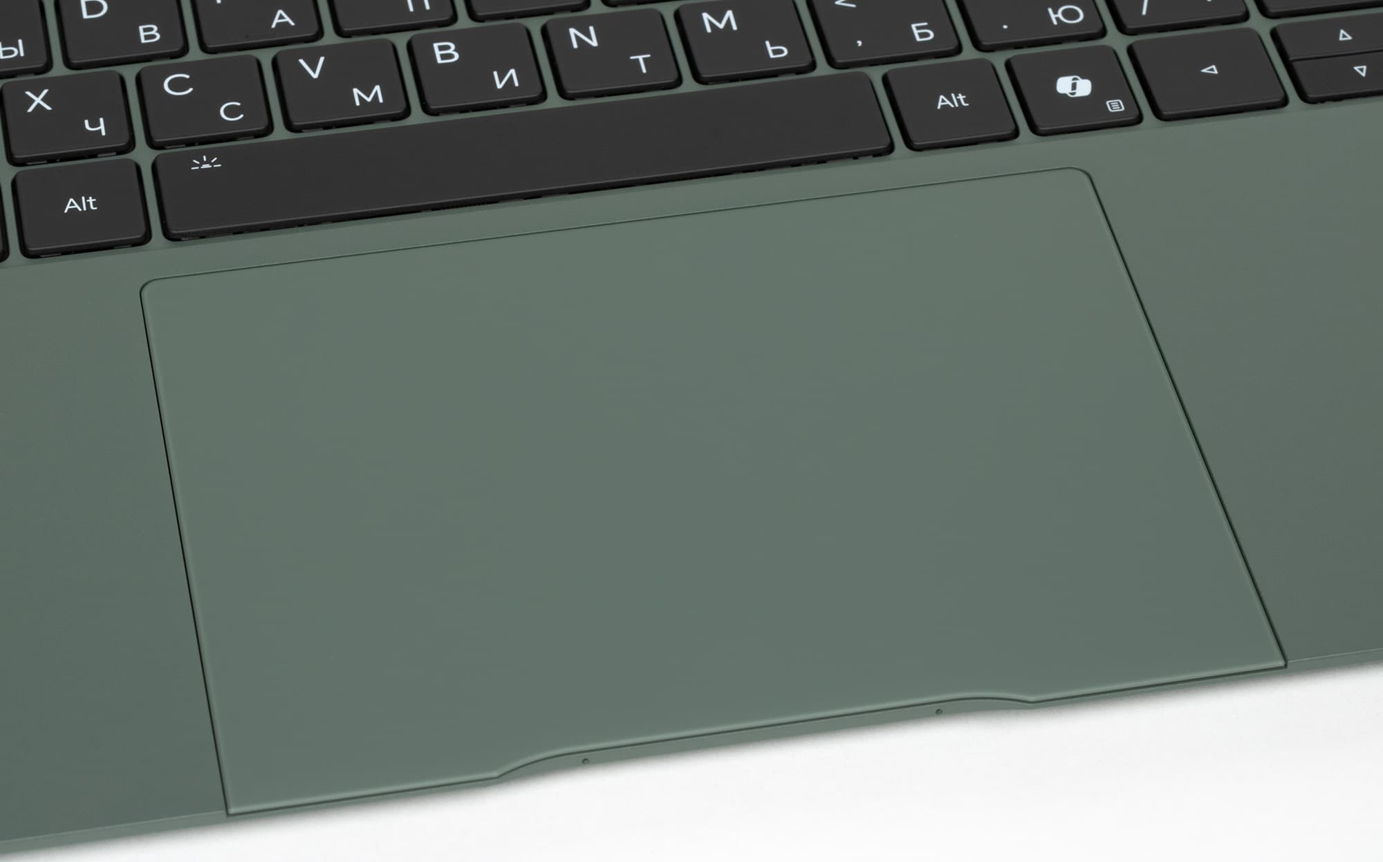 Honor MagicBook Art 14 доступен в двух расцветках: «Нефритовый зеленый — воплощение силы природы с картин Ван Гога» и «Туманный белый — оттенок утреннего неба с полотен Моне». Красиво обыграно, не правда ли? Нам на тестирование досталась первая версия расцветки (мы бы назвали ее «милитари»), хотя, субъективно, туманный белый выглядит невероятно притягательно. В подарок для девушки — просто беспроигрышный вариант.