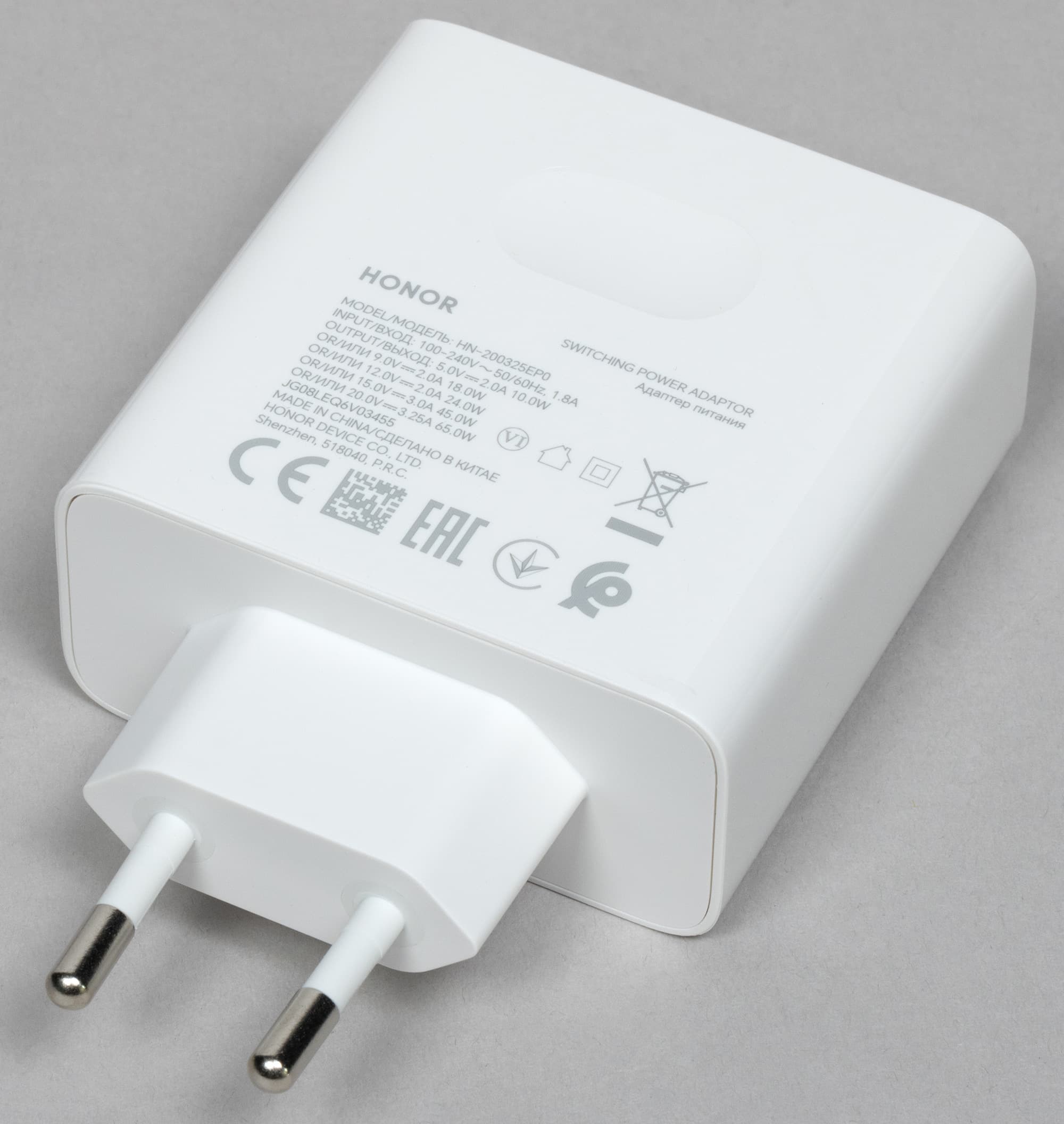 Мощность адаптера питания, входящего в комплект ноутбука Honor MagicBook Art 14, составляет 65 ватт (модель HN-200325EP0).