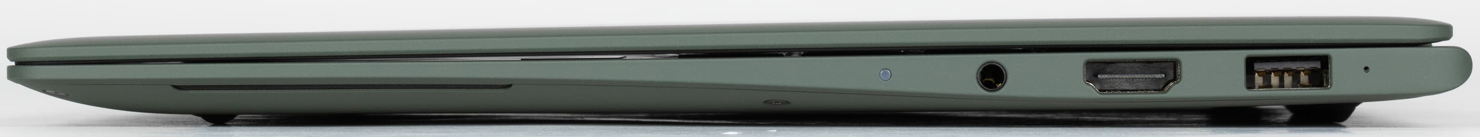 Справа можно обнаружить порт USB 3.2 Gen1 Type-A, видеовыход HDMI 2.1-TMDS и 3,5-миллиметровый разъем для наушников и микрофона (миниджек).