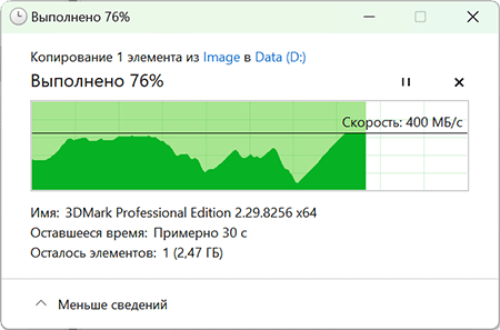 | Скорость копирования данных, c | 42,62 | 8,02 | 11,70 | 6,05 |