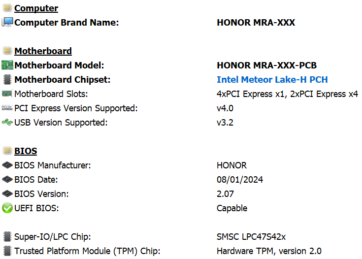 | Чипсет | Intel Meteor Lake-H PCH | |