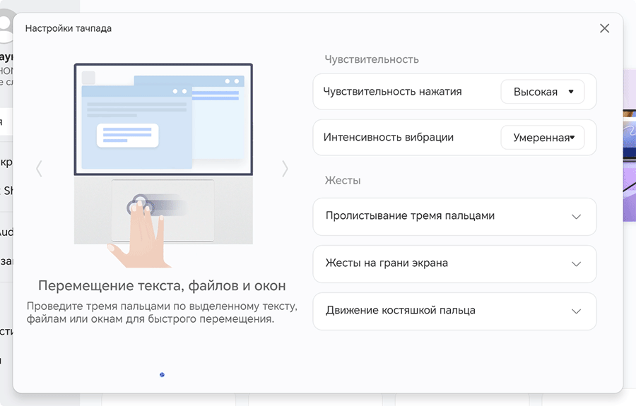 В утилите Honor PC Manager можно настроить работу с тачпадом жестами, повысив таким образом эффективность и скорость примитивных, но регулярных манипуляций — таких, например, как свернуть окно, сделать скриншот, изменить громкость или пролистнуть страницу.