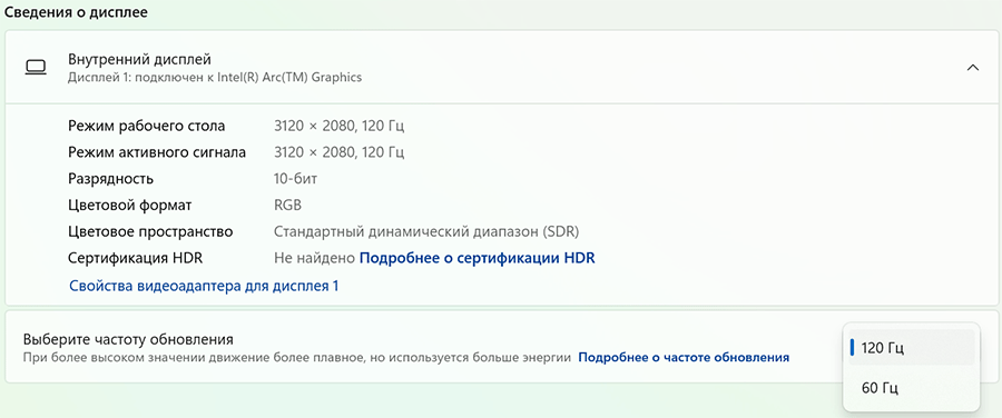 | Видеоподсистема | интегрированная графика Intel Arc iGPU (128 исполнительных блоков), использует ресурсы оперативной памяти | |