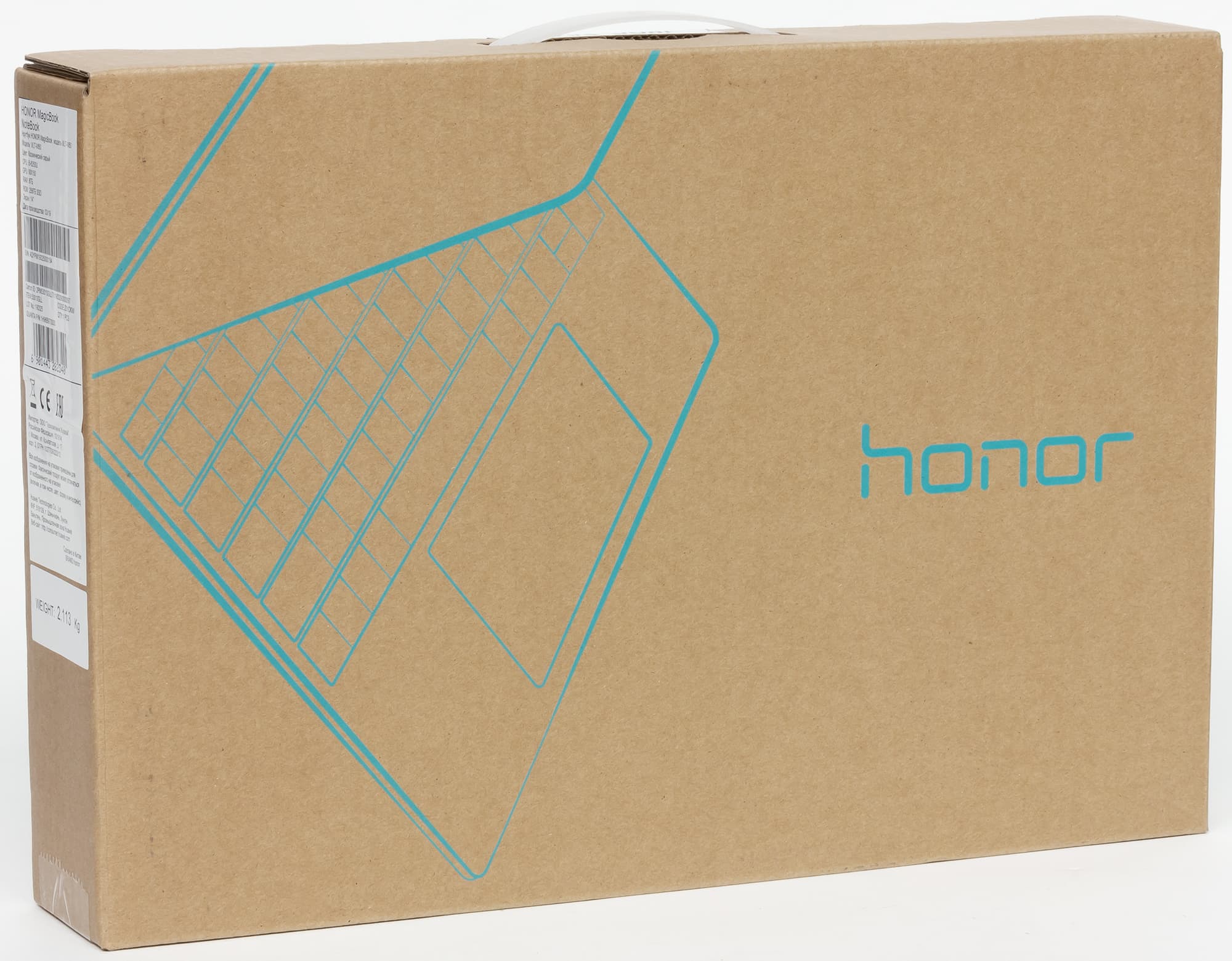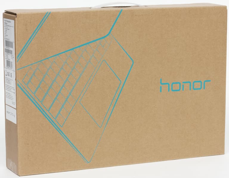 Ноутбук Honor MagicBook Intel (VLT-W50) поставляется в небольшой картонной коробке с ручкой.
