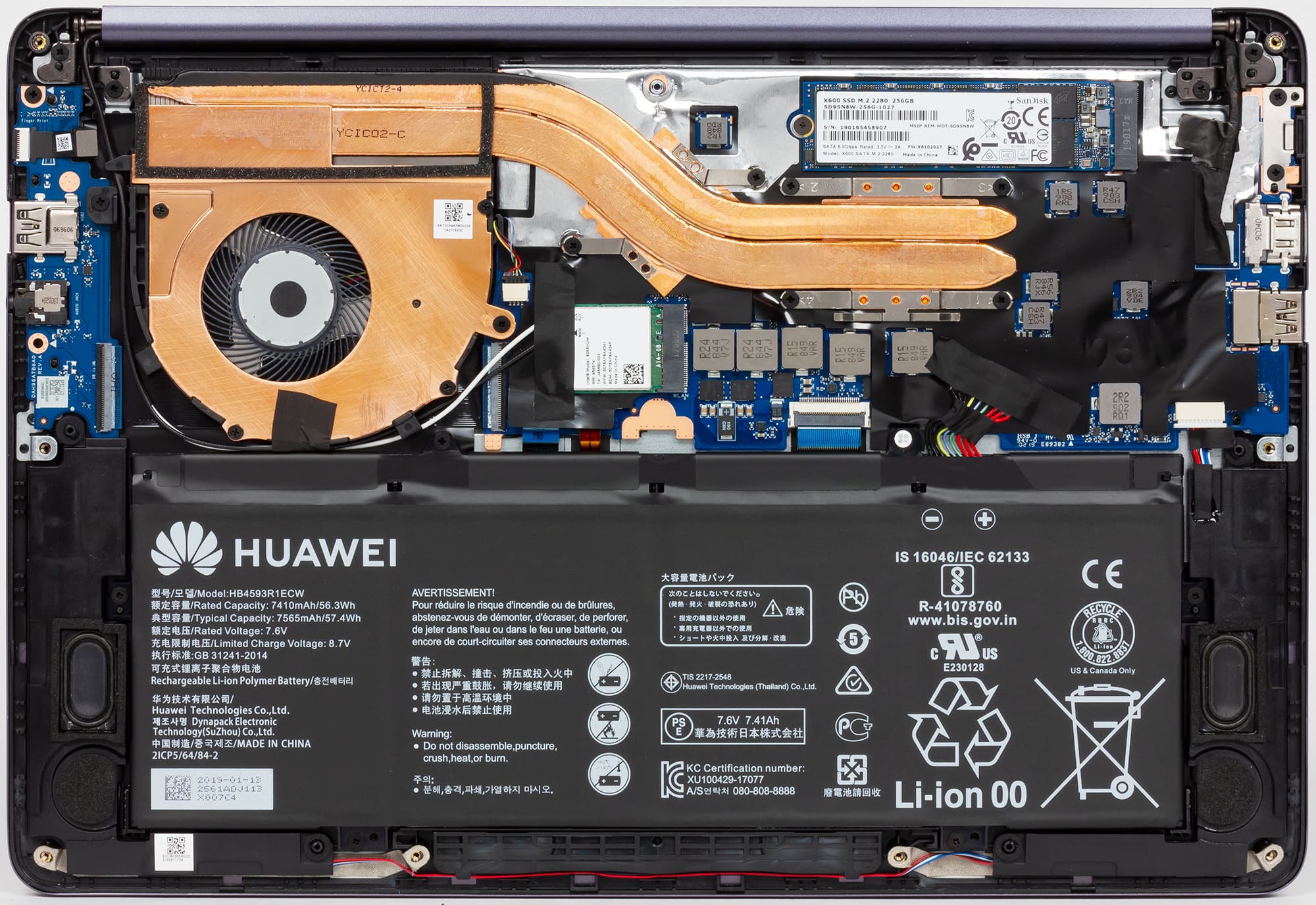 Как уже говорилось, подсистема хранения данных ноутбука Honor MagicBook Intel (VLT-W50) представляет собой SSD-накопитель SanDisk X600 SD9SN8W-256G-1027 емкостью 256 ГБ с интерфейсом SATA 6 Гбит/с. Этот накопитель устанавливается в разъем M.2 и имеет форм-фактор 2280.