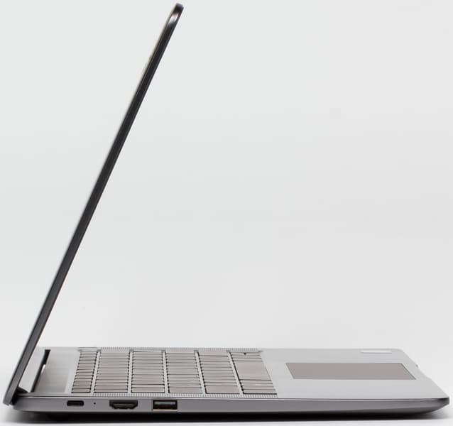 На левом торце корпуса ноутбука расположены порт USB 3.0, видеовыход HDMI, порт USB Type-C для зарядки ноутбука.