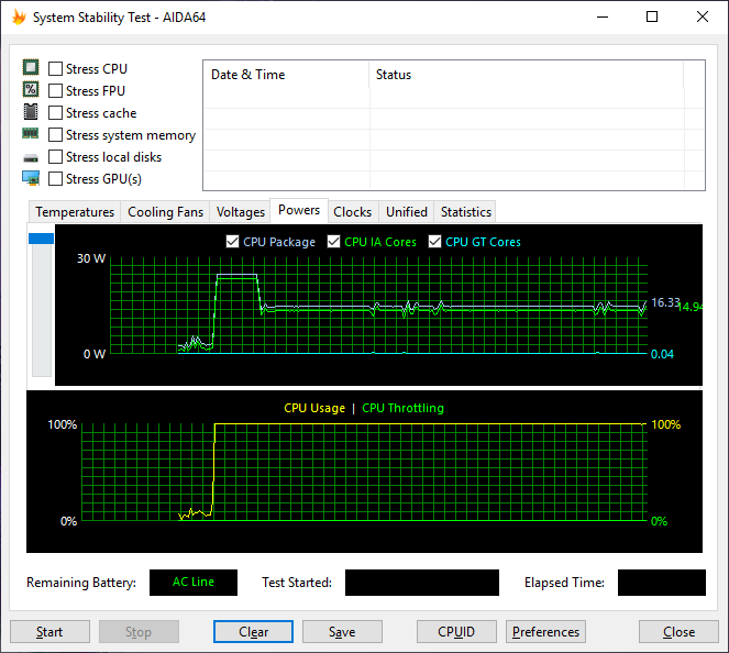 Температура ядер процессора в данном режиме точно такая же, как и в предыдущем случае, то есть стабилизируется на уровне 73 °C, а мощность энергопотребления составляет 16 Вт.