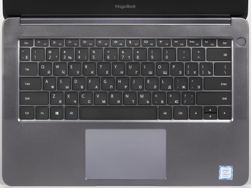 В ноутбуке Honor MagicBook Intel (VLT-W50) используется ставшая уже традиционной для современных ноутбуков мембранная клавиатура островного типа с увеличенным расстоянием между клавишами. Последние имеют размеры 15,5×15,5 мм, а расстояние между ними — 3,5 мм. Глубина нажатия (ход клавиш) составляет 1,4 мм. Символы на клавишах имеют белый цвет. На черном фоне клавиш эти символы хорошо различимы даже в условиях плохого освещения.