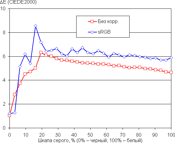 | Яркость белого поля | 500 кд/м² | −5,0 | 4,3 |