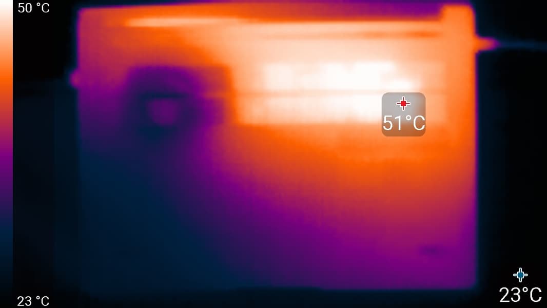 Ниже приведены термоснимки, полученные после долговременной работы ноутбука под максимальной нагрузкой на CPU и GPU (профиль Производительный):