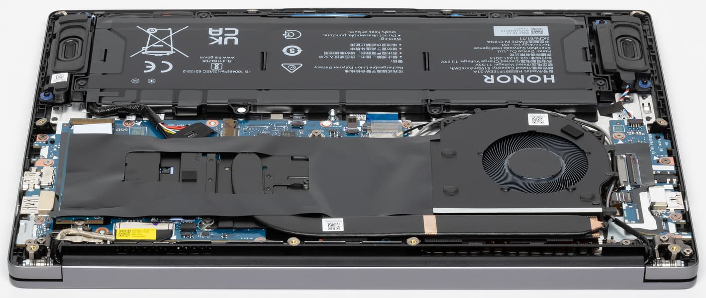 | Прочие особенности | алюминиевый корпус (крышка и рабочая панель); встроенный датчик NFC; кнопка питания со встроенным сканером отпечатков пальцев; поддержка технологии Honor Connect; программное обеспечение Honor PC Manager | |