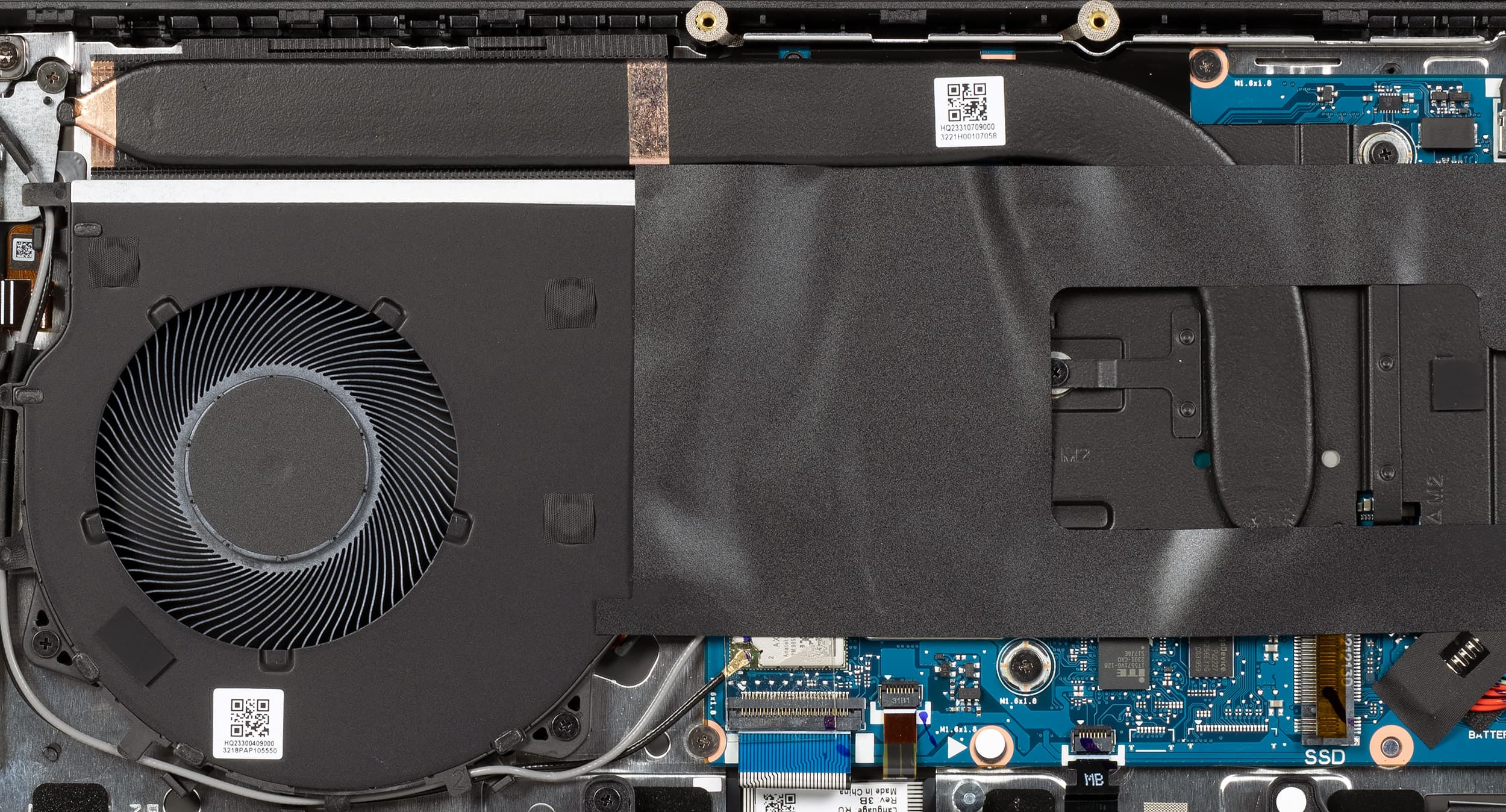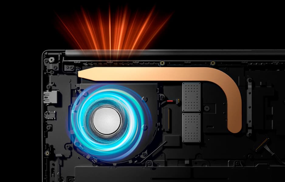В системе охлаждения Honor MagicBook X 14 2023 используется теплораспределительная пластина на процессоре и микросхемах оперативной памяти, соединенная с радиатором 12-миллиметровой тепловой трубкой.
