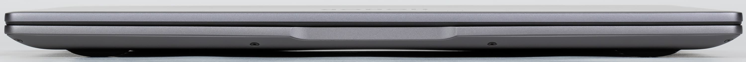 К переднему торцу корпус ноутбука сужается, позволяя ему мимикрировать под тонкий ультрабук. Есть здесь и выемка для удобного зацепа крышки пальцами, но придерживать основание всё равно придется.