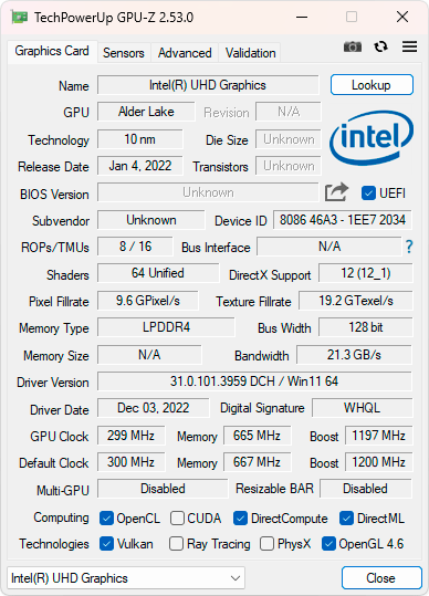 | Видеоподсистема | интегрированная графика Intel UHD, 1,2 ГГц | |