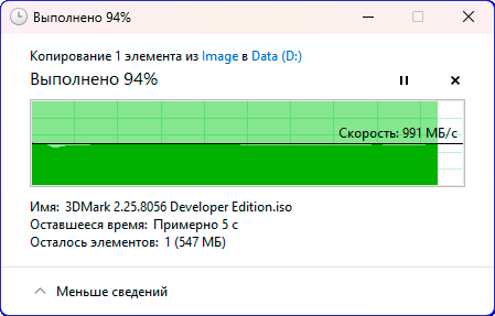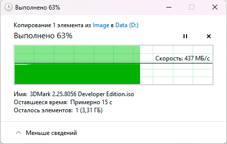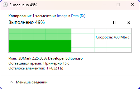 | Скорость копирования данных, c | 42,62 | 11,7 | 8,98 | 9,7 |
