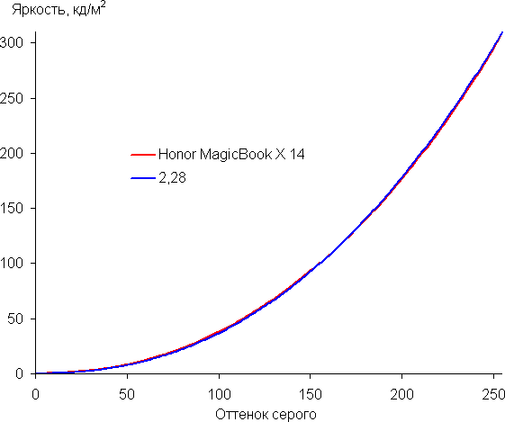 Аппроксимация полученной гамма-кривой дала показатель 2,28, что немного выше стандартного значения 2,2. При этом реальная гамма-кривая мало отклоняется от аппроксимирующей степенной функции:
