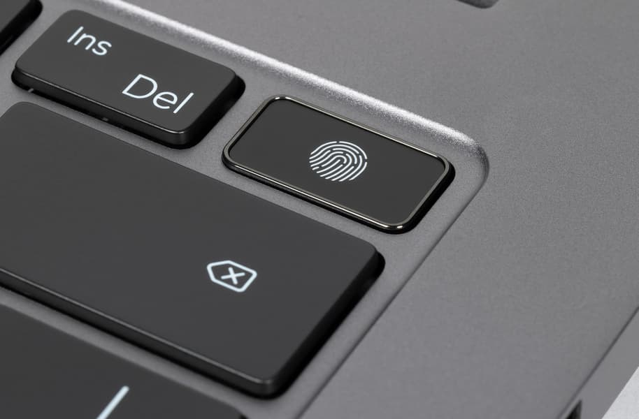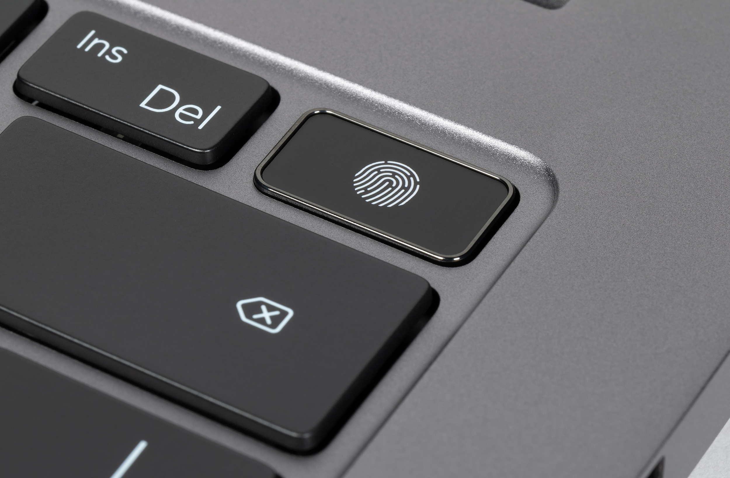 Сканер отпечатков пальцев встроен в кнопку включения ноутбука, а сама кнопка утоплена в рабочую панель клавиатуры и требует более жесткого нажатия. Иначе говоря, случайные ее срабатывания во время печати на клавиатуре исключены.
