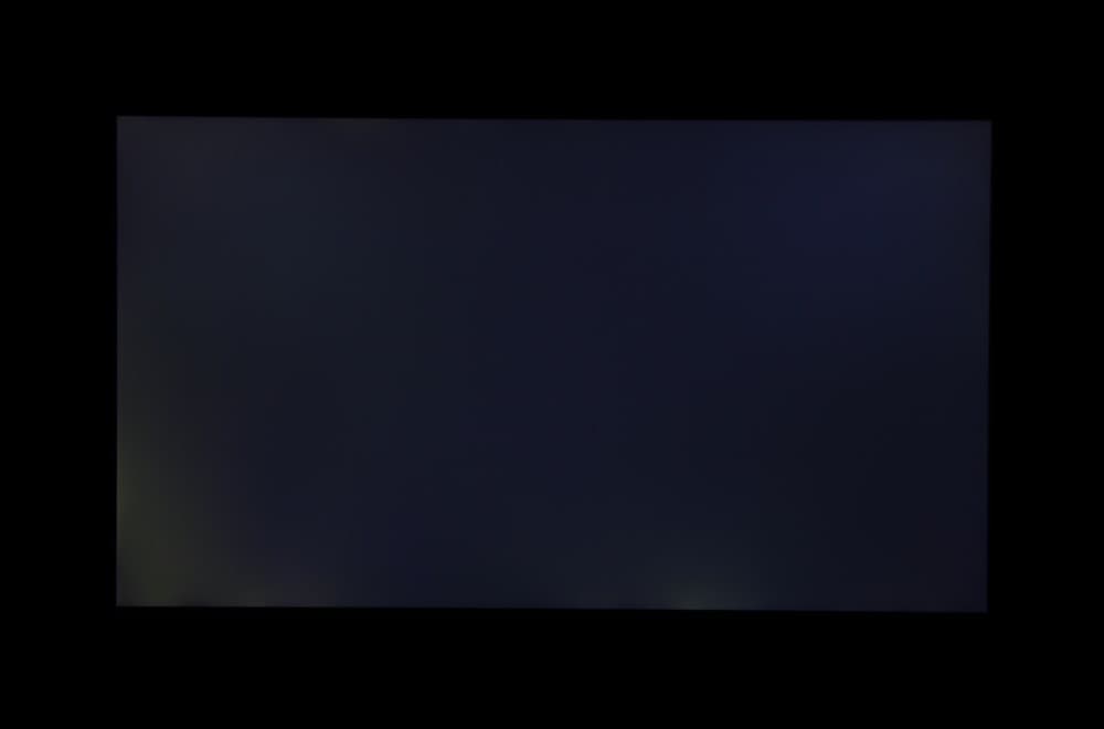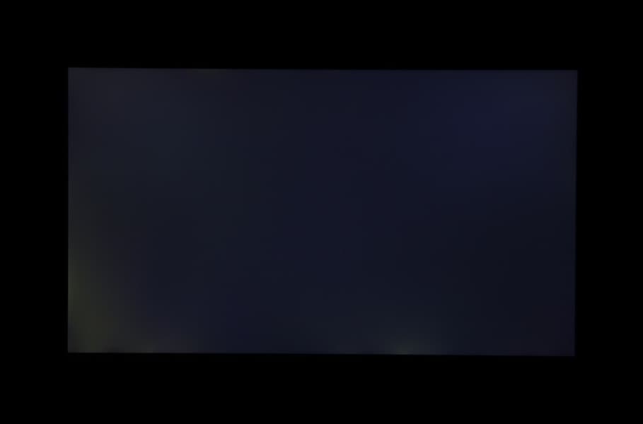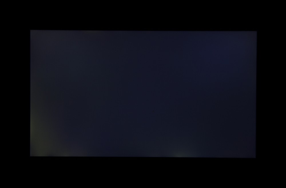 Если отступить от краев, то равномерность белого поля очень хорошая, а черного поля и как следствие контрастности существенно хуже. Контрастность по современным меркам для данного типа матриц немного выше типичной. Фотография ниже дает представление о распределении яркости черного поля по площади экрана: