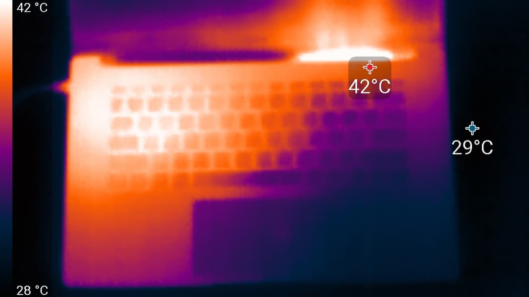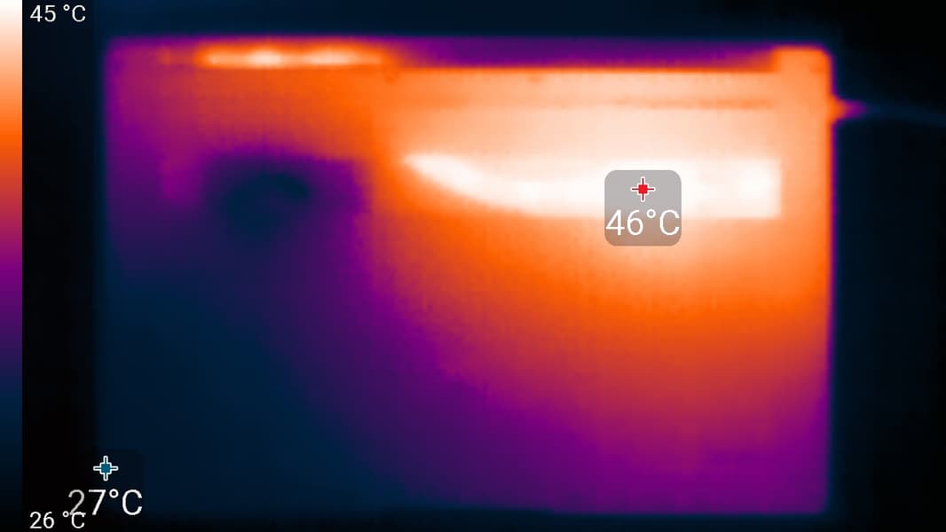 Ниже приведены термоснимки, полученные после долговременной работы ноутбука под максимальной нагрузкой на CPU и GPU: