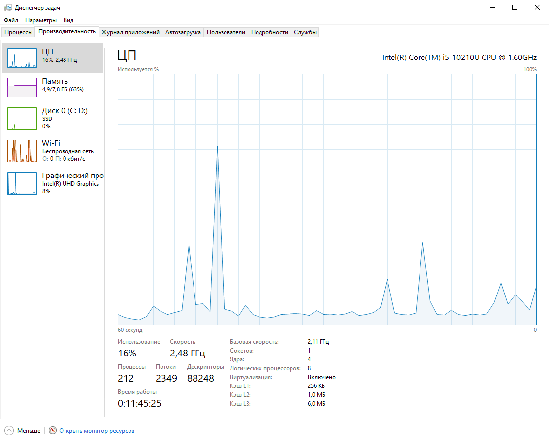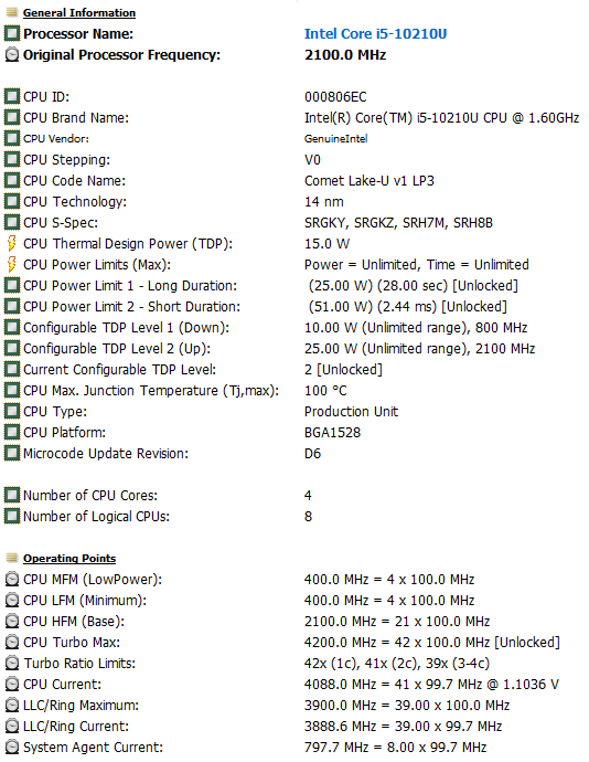 | Процессор | Intel Core i5-10210U (14 нм, 4 ядра/8 потоков, 1,6—4,2 ГГц, L3-кэш 6 МБ, TDP 25 Вт) в качестве процессора может быть установлен Intel Core i3-10110U | |