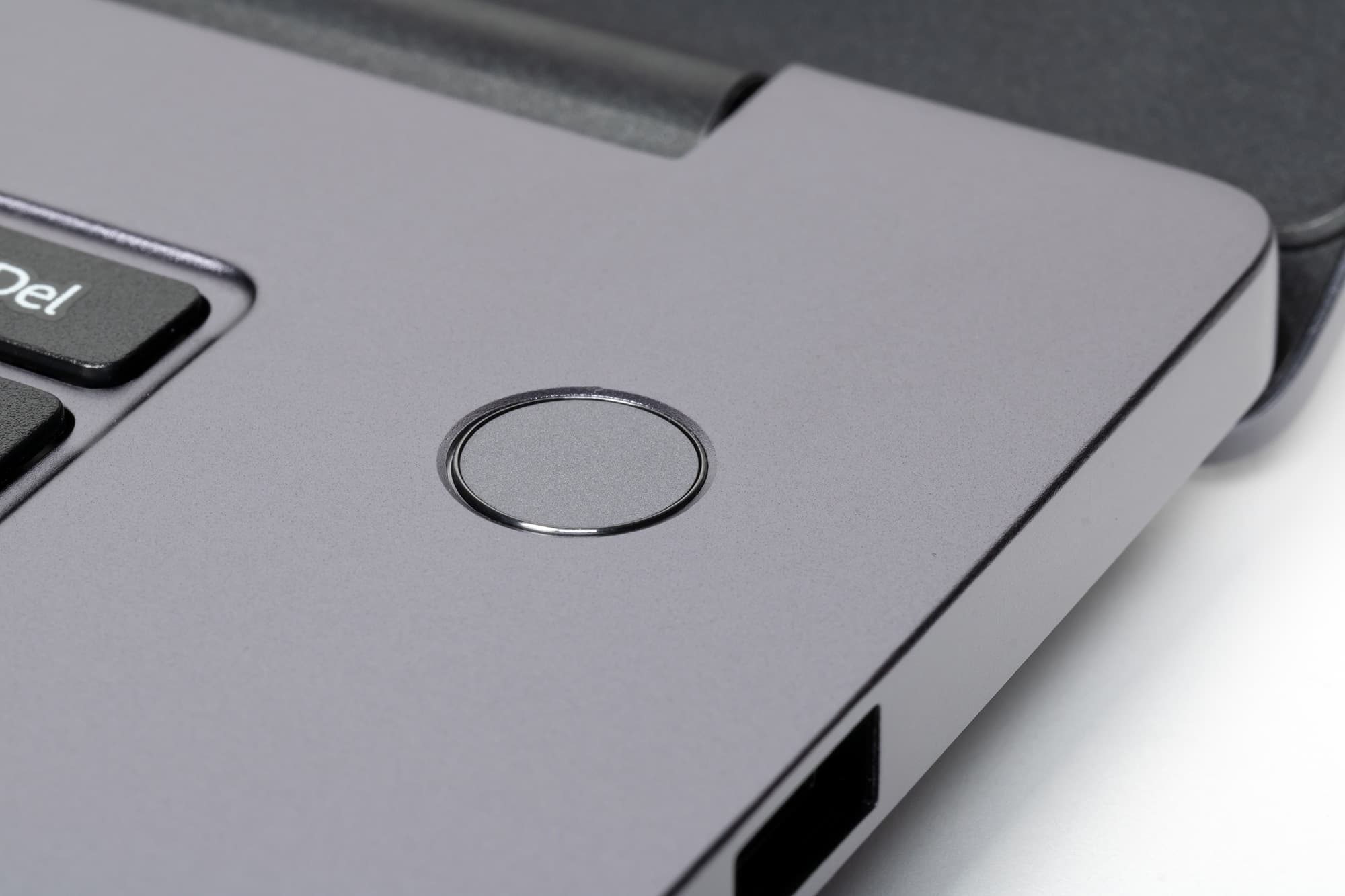 В правом дальнем углу рабочей панели размещена кнопка включения ноутбука со встроенным сканером отпечатков пальцев.