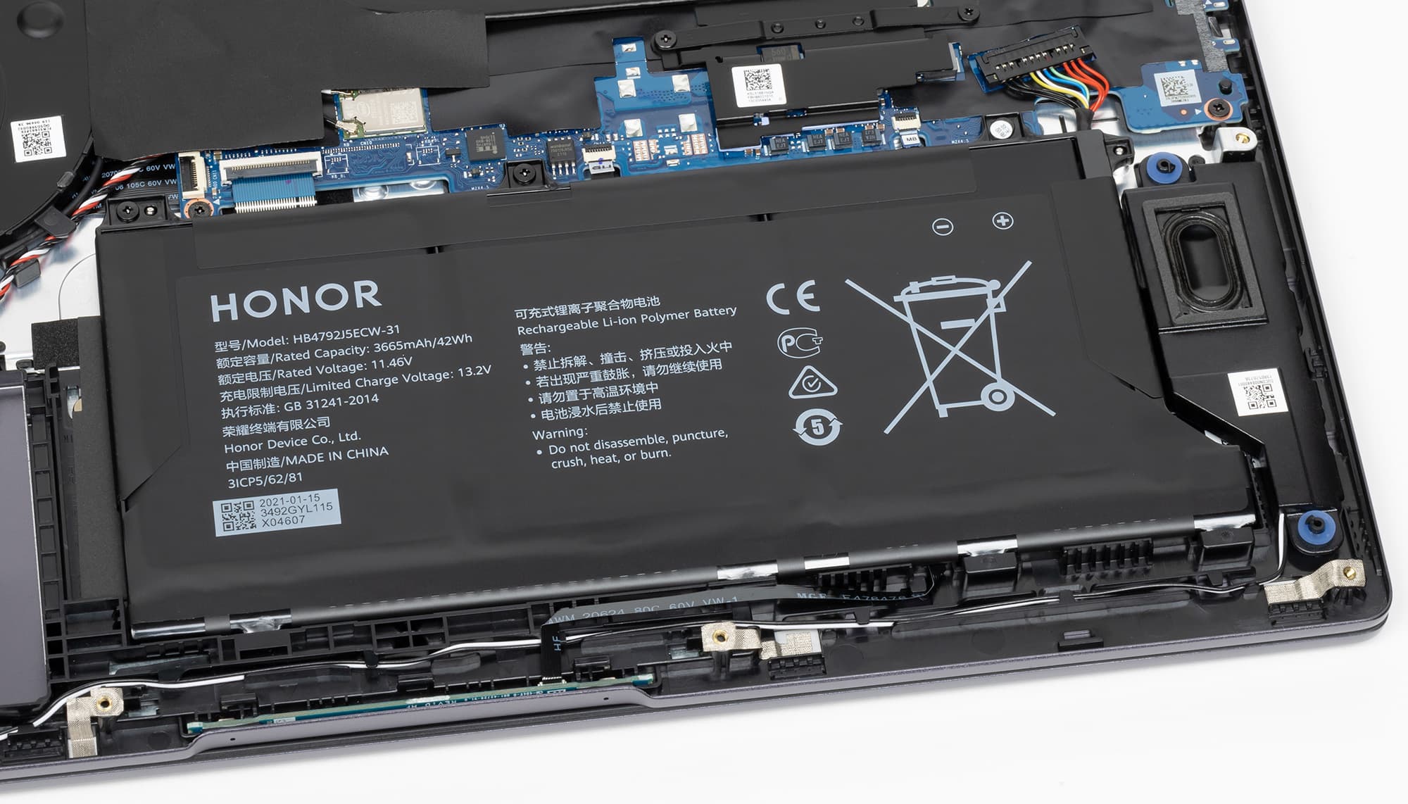 В ноутбуке установлена литий-ионная полимерная батарея с маркировкой HB4792J5ECW-31 емкостью 42 Вт·ч (3665 мА·ч).