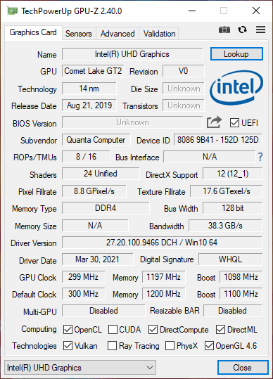 | Чипсет | Intel Comet Lake-U | |