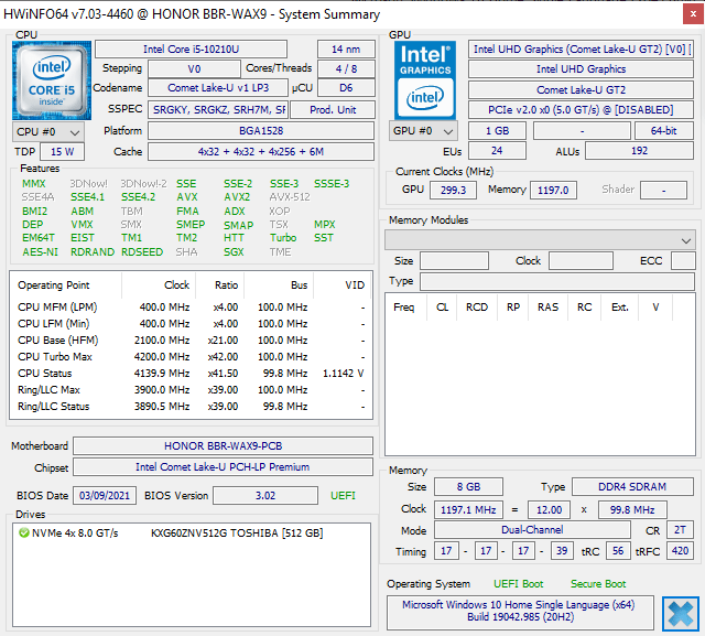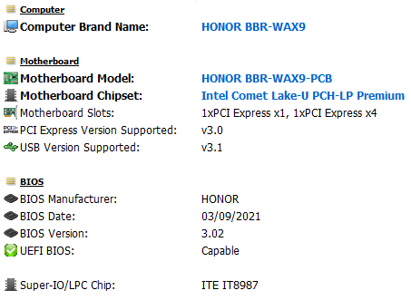 | Honor MagicBook X 15 (BBR-WAH9) | ||