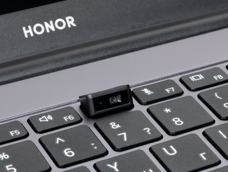 Третье устройство ввода — веб-камера — никаких изменений в сравнении с предыдущими моделями ноутбуков Honor не претерпела. Она все так же размещена в центральной функциональной кнопке и открывается после легкого нажатия на нее.