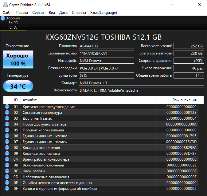 | Накопитель | 1×SSD 512 ГБ (Kioxia KXG60ZNV512G, M.2 2280, NVMe, PCIe 3.0 x4) в варианте с процессором Intel Core i3-10110U и в 14-дюймовой версии будет SSD объемом 256 ГБ | |