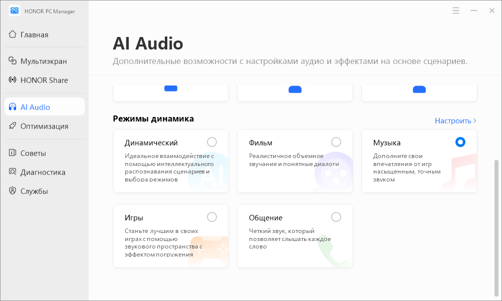 | Приложение | «Умный» режим | Honor PC Manager не загружен |