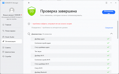 | Приложение | «Умный» режим | Honor PC Manager не загружен |