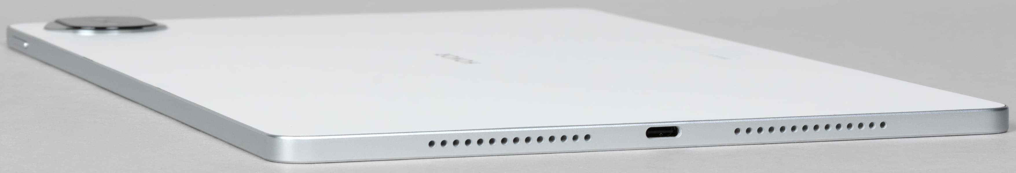 На узких боковых гранях размещены отверстия динамиков. Они обеспечивают достойный (по меркам форм-фактора) стереозвук с ярко выраженным позиционированием. Производитель подчеркивает: планшет оснащен восемью (!) динамиками и имеет сертификат IMax Enhanced. А «улучшенные алгоритмы пространственного аудио обеспечивают на 25% расширенное звуковое поле по сравнению с прошлым поколением планшета, обеспечивают широкий диапазон, увеличенную дистанцию передачи звука и более четкое разделение каналов».