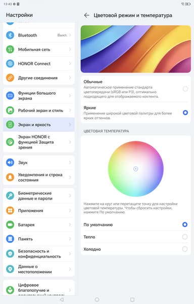 Фотография выше получена при активном профиле Обычные [цвета] в настройках экрана, всего их два: