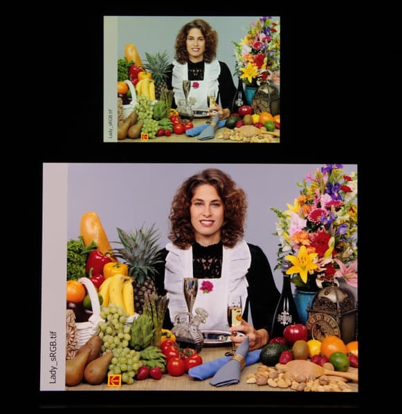 Отметим, что на экранах с уширенным цветовым охватом (без соответствующей коррекции) цвета́ обычных изображений, оптимизированных для устройств sRGB, выглядят неестественно насыщенными. Отсюда и рекомендация: в большинстве случаев смотреть кино, фотографии и все естественное лучше при выборе профиля Обычные. При этом, если в изображении прописан отличный от sRGB профиль, то смотреть его лучше с использованием штатной программы Галерея.