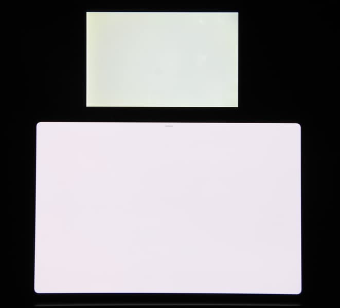 Экран характеризуется великолепными углами обзора. Яркость под углом у обоих экранов заметно уменьшается (если сравнивать с Nexus 7), но в случае тестируемого планшета падение яркости выражено гораздо меньше. В итоге, даже если установить формально одинаковую яркость, то OLED-экран визуально выглядит гораздо более ярким (в сравнении с ЖК-экранами), так как на экран мобильного устройства часто приходится смотреть как минимум под небольшим углом. Правда, у этого OLED-экрана белый цвет при отклонении на большие углы приобретает легкий радужный оттенок, но черный цвет остается просто черным под любыми углами. Он настолько черный, что параметр контрастности в данном случае неприменим. Для сравнения приведем фотографии, на которых на экраны тестируемого планшета и второго участника сравнения выведены одинаковые изображения (Nexus 7 выше), при этом яркость экранов изначально установлена примерно на 200 кд/м², а цветовой баланс на фотоаппарате принудительно переключен на 6500 К.