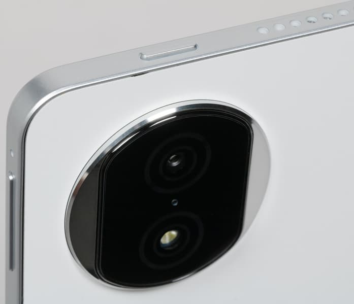 Очень тонкий (всего 5 мм) корпус выглядит как Unibody, но на самом деле задняя крышка здесь — самостоятельный элемент, и выполнена она из металла, тогда как плотно прилегающая окантовка сделана, по-видимому, из пластика, хотя цвет у нее практически такой же.