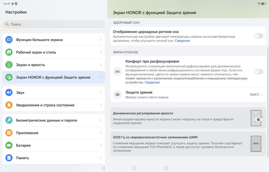 | Режим чтения, белый фон | 16 часов 35 минут | 24 часа 40 минут | 13 часов 40 минут |