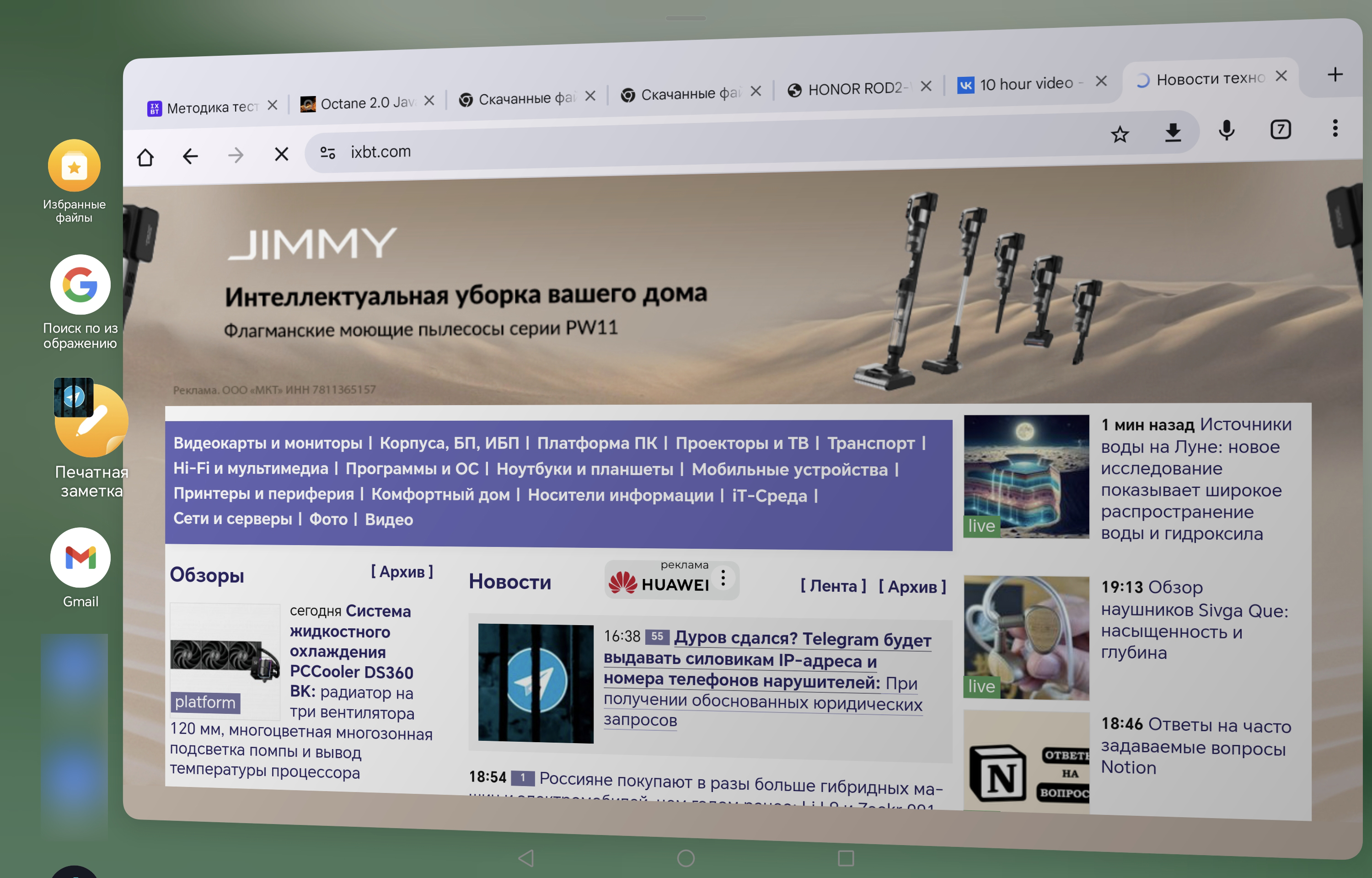 Плюсы можно перечислять долго. К ним отнесем и качество съемки на тыльную камеру, и неплохое время автономной работы, и программные новшества — особенно нам понравилась технология Magic Portal, позволяющая удобно переносить контент между приложениями. Ну а если говорить о недостатках, то в первую очередь отметим отсутствие спутниковой навигации, поддержки карт памяти и SIM-карт (хотя бывало в истории, что версии планшетов Honor со всеми этими функциями доезжали до России, но немного позже). Кроме того, многие программные элементы еще не русифицированы, например голосовое распознавание в Заметках.