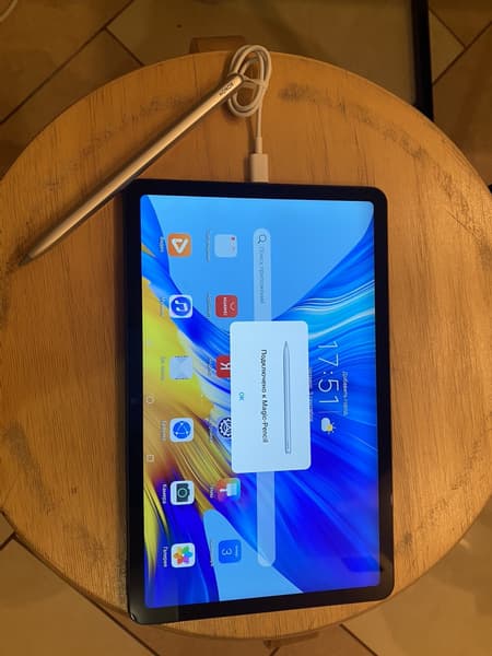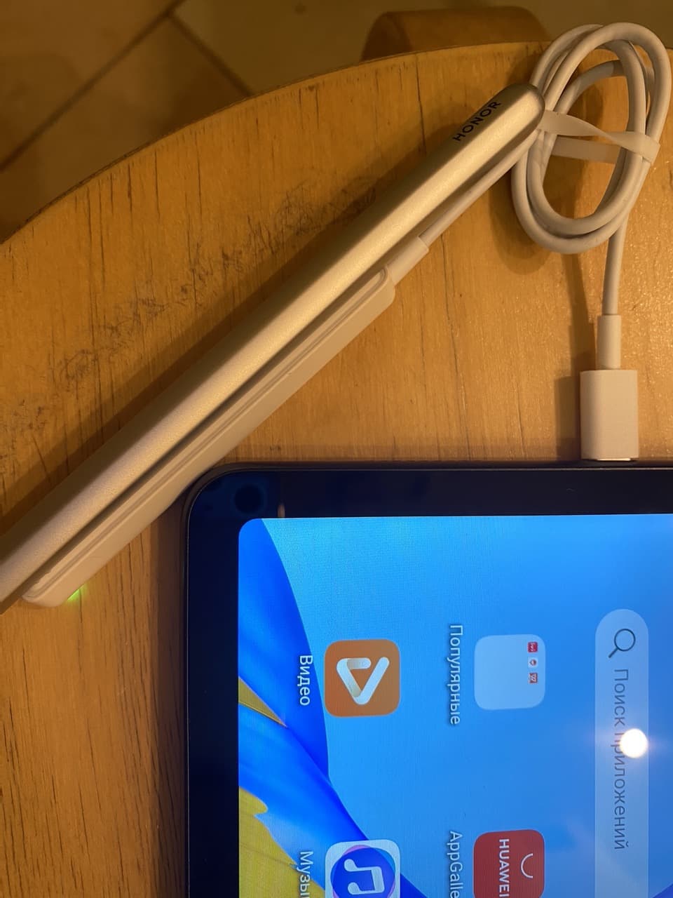 Стилус стандартный, но подключается необычно. В комплекте с ним идет примагничивающийся блок, соединенный с кабелем USB-C. С помощью этого блока стилус надо соединить с планшетом и дальше уже разрешить коннект. Тоже не самое очевидное и не самое удобное решение.