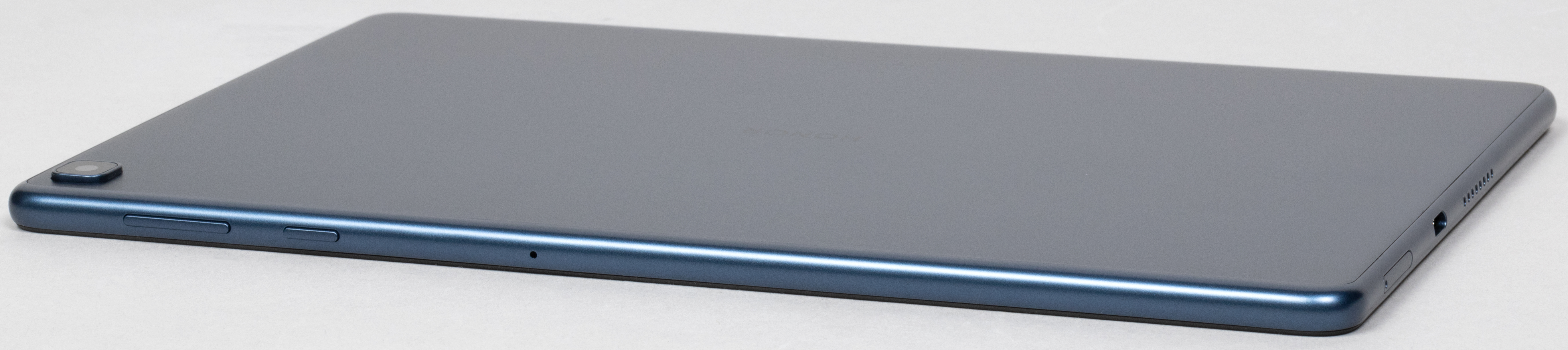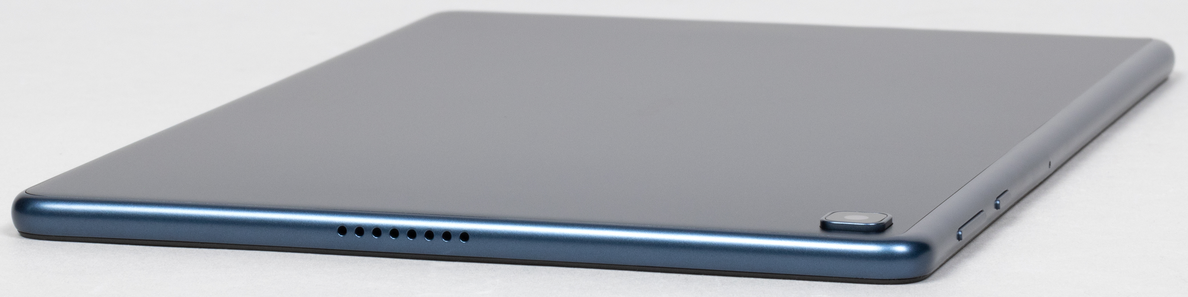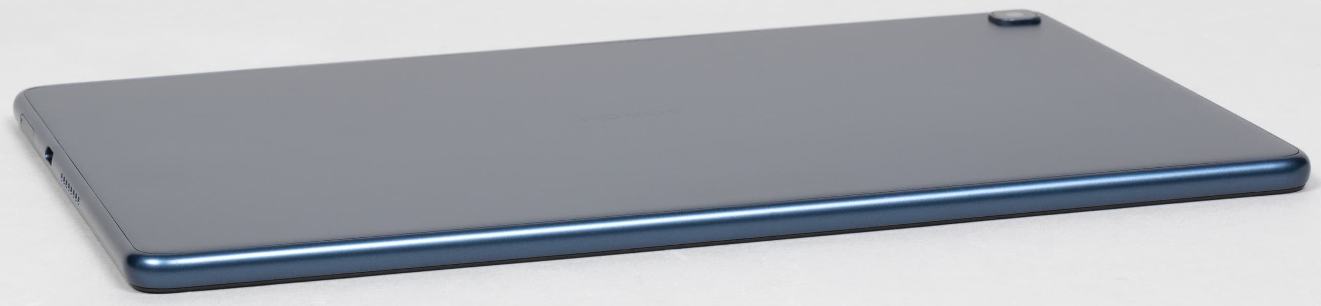 Тыльная поверхность устройства выполнена из металла, грани — из пластика. Но поскольку пластик выкрашен в тот же оттенок — благородный синий с серовато-стальным отливом, узнать, что материалы тут разные, можно, только взяв планшет в руки.