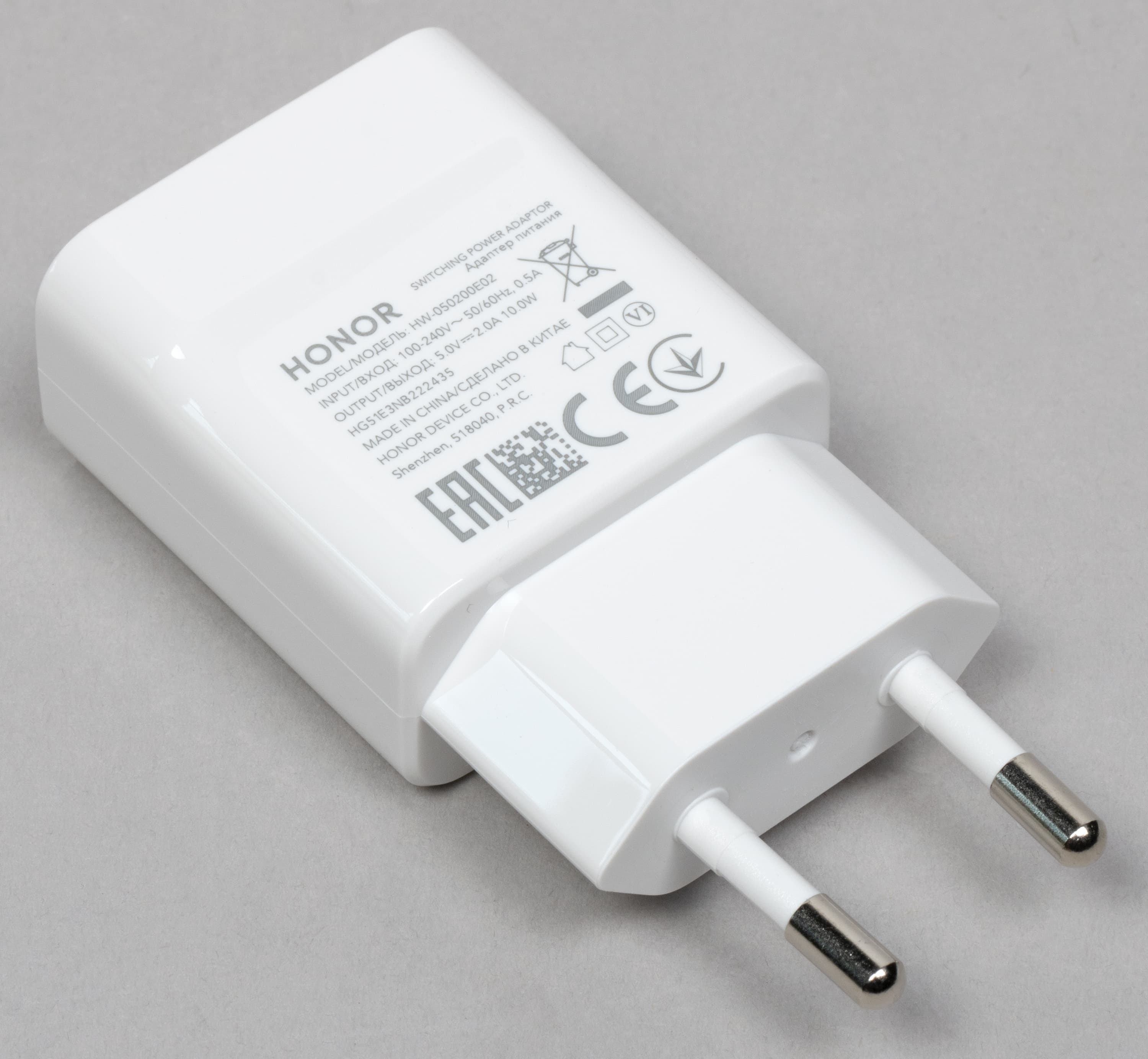 К сожалению, зарядный блок не поддерживает технологию быстрой зарядки Honor SuperCharge. Его максимум — 5 В 2 А.