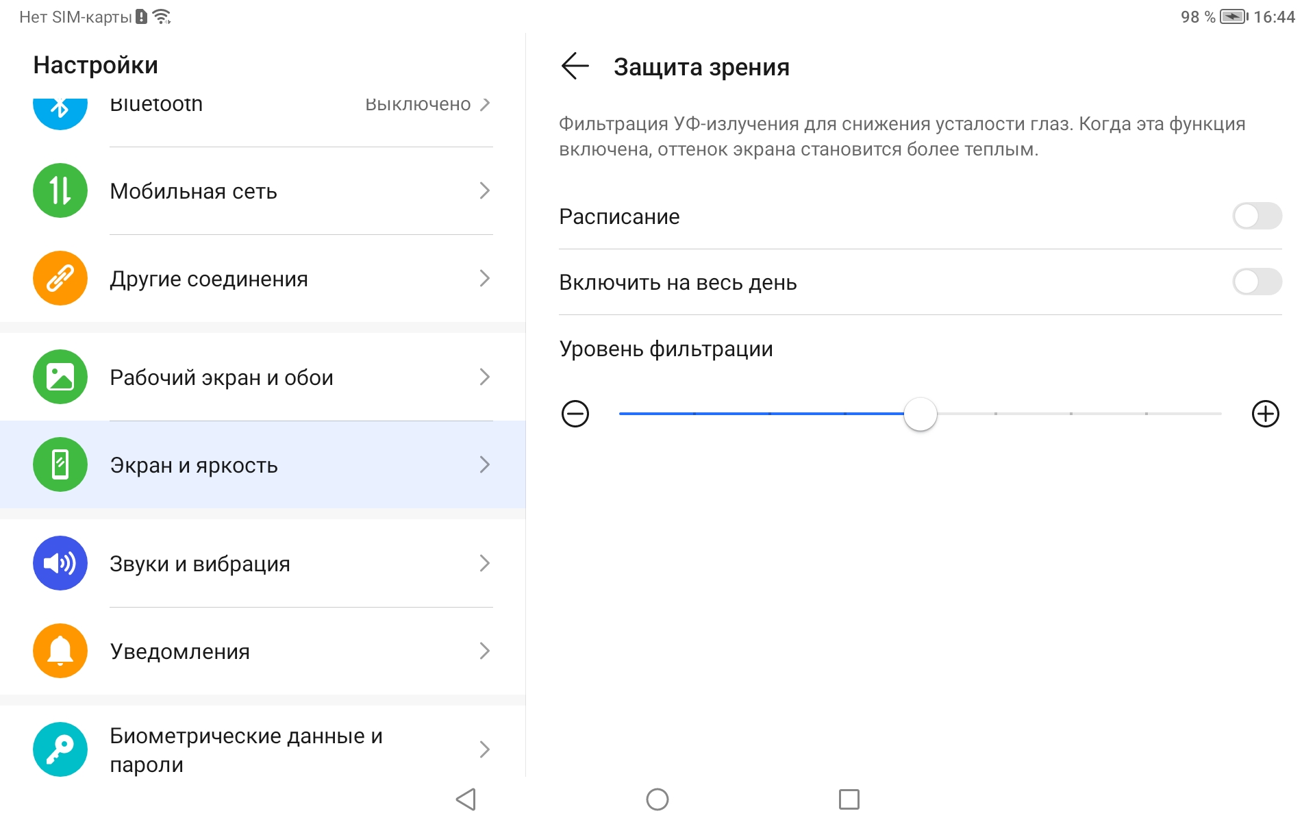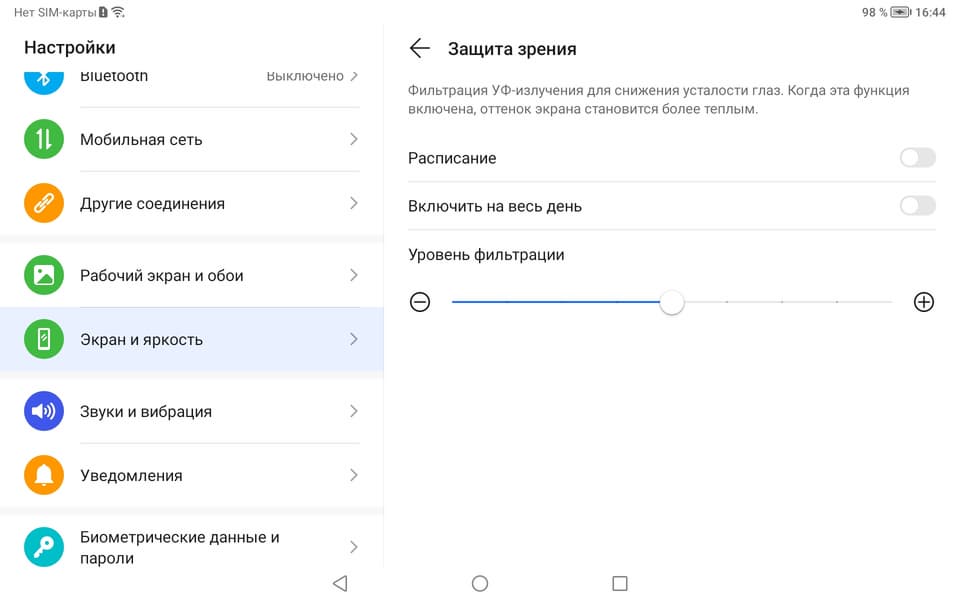 Присутствует уже традиционная настройка, позволяющая снизить интенсивность синей компоненты.