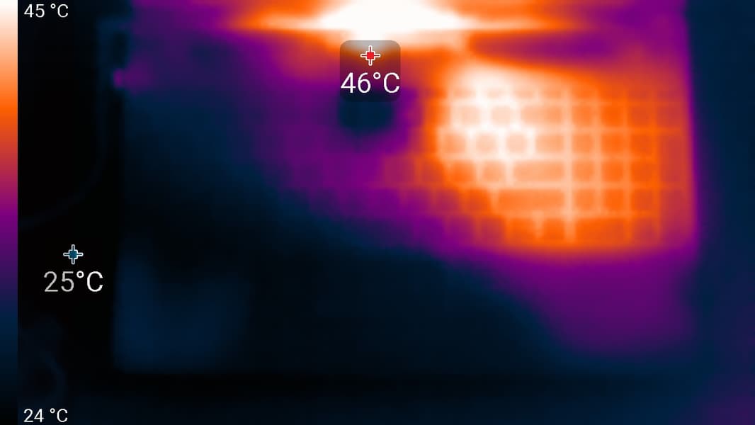 Ниже приведены термоснимки, полученные после долговременной работы ноутбука под максимальной нагрузкой на CPU и GPU: